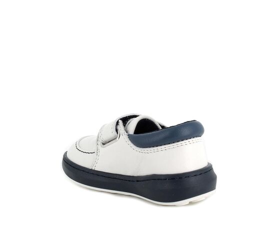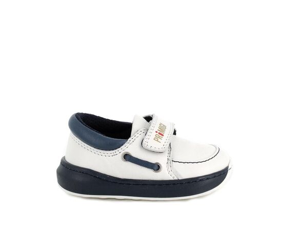 Παιδικό μοκασίνι απο την εταιρεία Primigi σε χρώμα λευκό με μπλέ λεπτομέρειες.