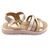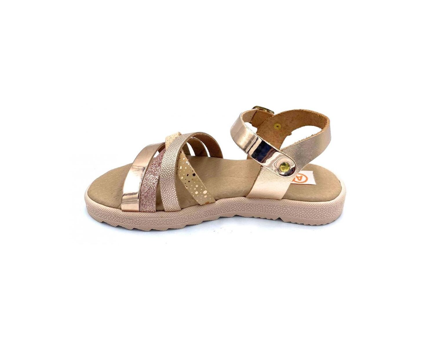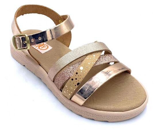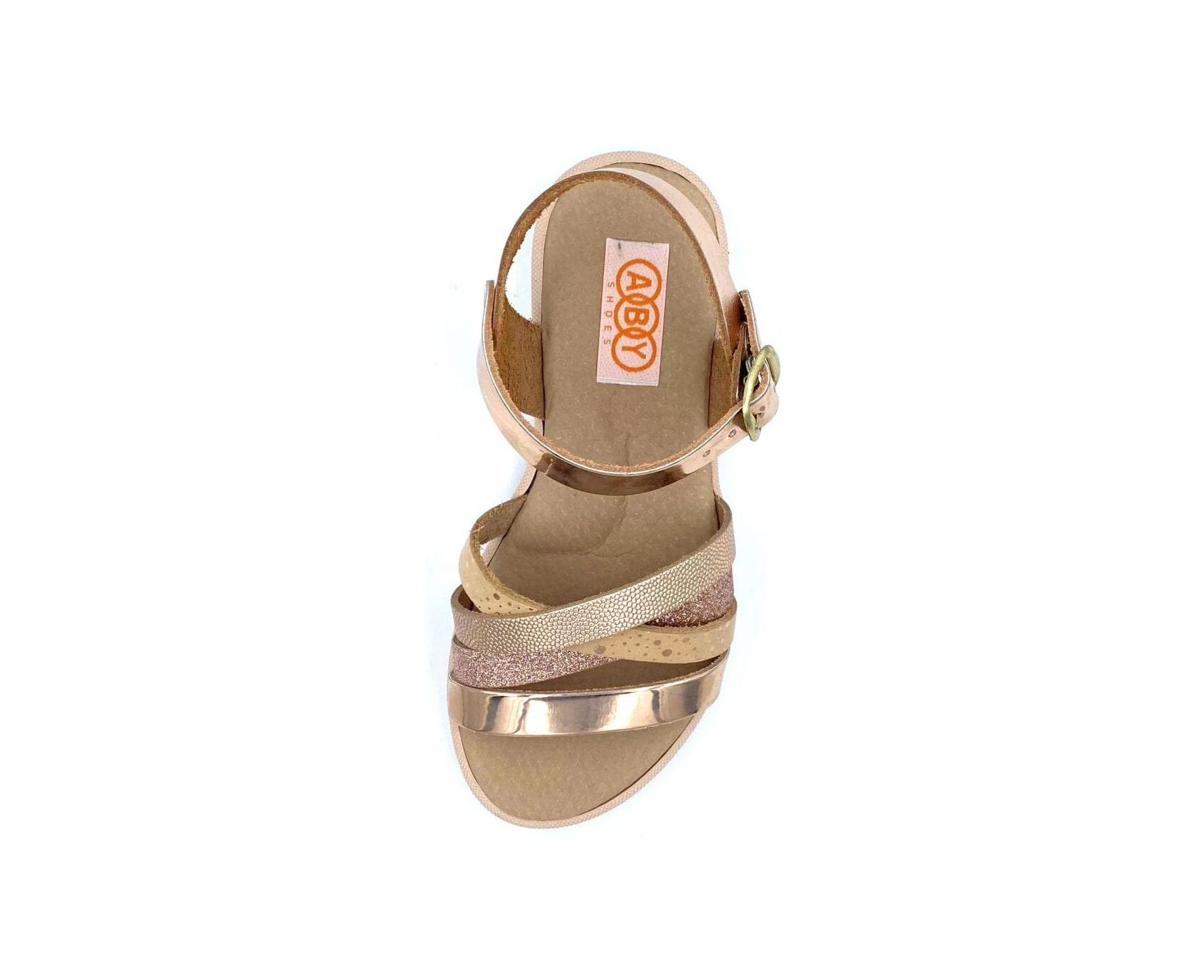 Παιδικό πέδιλο από την συλλογή της εταιρείας Aby. Δερμάτινο με ανατομικό πάτο, ελαστική σόλα, αντιολισθητική, σε ένα υπέροχο σχέδιο στις αποχρώσεις του χρυσού, κούμπωμα για καλύτερο κράτημα. Ξεχωρίζει στις εμφανίσεις των παιδιών φορώντας το, στις βόλτες, στο παιχνίδι, αλλά και όλες τις ώρες της ημέρας.
